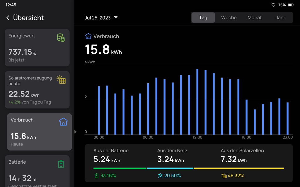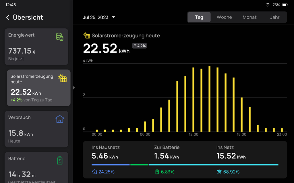 Kontrolliere die Energiedaten deines Hauses täglich, monatlich und jährlich in Echtzeit. Bist du neugierig auf die ökologische Effizienz deines Zuhauses? Hier bekommst du alle Antworten auf deine Fragen!
