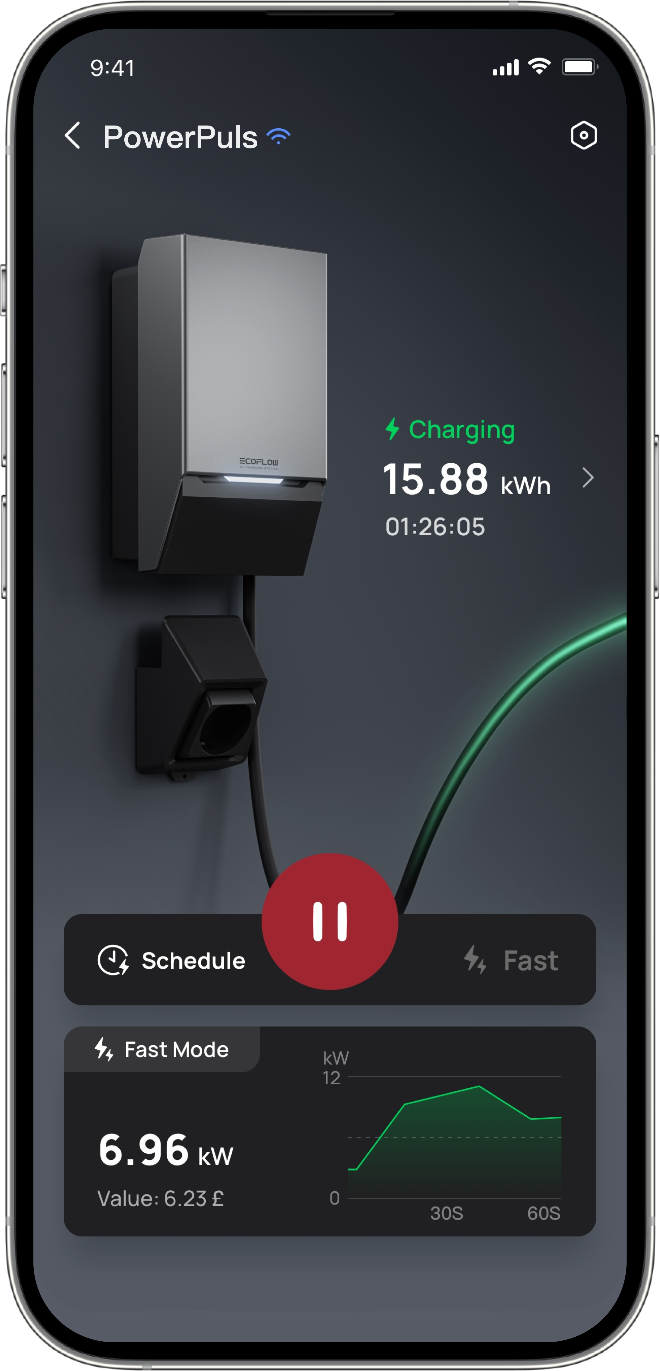 PowerPulse ist die flexible 11-kW-Wallbox für moderne Eigenheime – entwickelt für eine einfache Integration in PV-gestützte Energiesysteme. Ob alleinstehend oder als Teil des EcoFlow PowerOcean Systems: PowerPulse bietet maximale Kontrolle, smarte Steuerung und ein zukunftssicheres Ladeerlebnis.